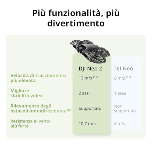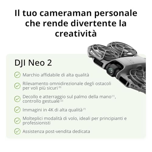 Il DJI Neo 2 si presenta come un drone eccezionale, un concentrato di tecnologia che unisce portabilità estrema, qualità d'immagine elevata e una sicurezza di volo senza precedenti grazie al sistema omnidirezionale. Funzionalità innovative come il controllo gestuale e un ActiveTrack evoluto lo rendono uno strumento incredibilmente versatile, adatto sia al neofita che vuole iniziare a volare senza paura, sia al creator che cerca un dispositivo affidabile e compatto da portare sempre con sé. Nonostante qualche piccolo compromesso, come le prestazioni in bassa luce, il pacchetto complessivo è di altissimo livello e definisce un nuovo standard per i droni consumer.