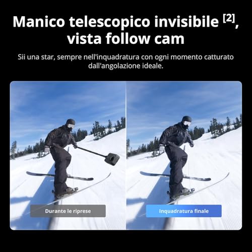 - Combo Essenziale: Aggiunge al pacchetto standard il famoso manico telescopico invisibile da 1,2 metri, che scompare magicamente dalle riprese, e una seconda batteria, estendendo notevolmente l'autonomia.