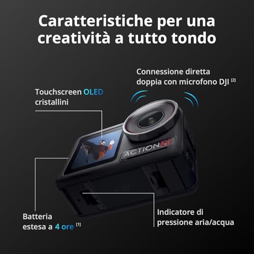 La connettività è stata potenziata con il Wi-Fi 6.0 e l'USB 3.0, che permettono un trasferimento dei file molto più rapido verso lo smartphone o il computer. L'app DJI Mimo rimane il punto di riferimento per controllare la camera da remoto, modificare rapidamente i video e condividerli sui social.