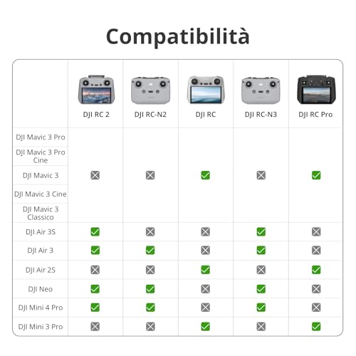 È importante verificare sempre la compatibilità con il proprio modello di drone e assicurarsi che sia il velivolo che il controller abbiano l'ultimo firmware installato per garantire un funzionamento corretto.