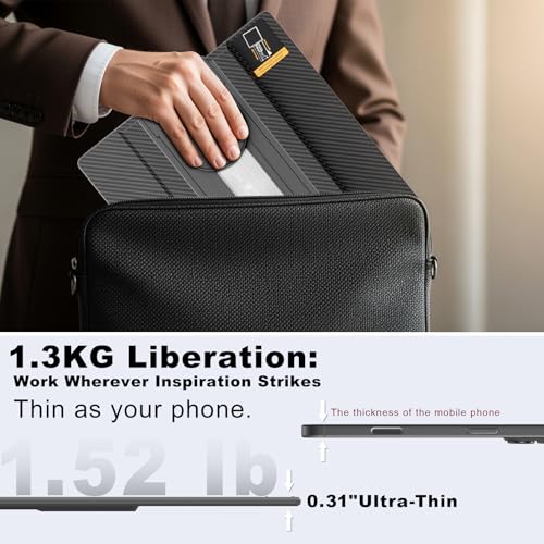 Il primo impatto con il monitor portatile domyfan è senza dubbio positivo. La caratteristica che salta subito all'occhio è la sua estrema leggerezza e sottigliezza. Con un design pensato per la mobilità, questo dispositivo si infila facilmente in qualsiasi borsa o zaino per laptop senza appesantire eccessivamente il carico. La confezione include anche una pratica custodia per il trasporto, un dettaglio non scontato che aiuta a proteggere lo schermo da graffi e piccoli urti durante gli spostamenti.