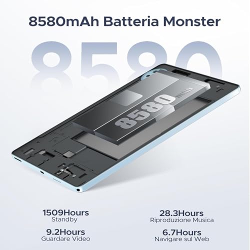 La batteria è senza dubbio uno degli aspetti più sorprendenti di questo tablet. Con una capacità di ben 8580mAh, l'autonomia è eccezionale. Durante i nostri test, siamo riusciti a coprire abbondantemente una giornata intera di utilizzo misto e intenso. Con un uso più moderato, è possibile arrivare anche a due giorni senza dover ricorrere al caricabatterie. DOOGEE dichiara oltre 10 ore di riproduzione video continua, un dato che i nostri test hanno confermato. Questo rende l'U11-V un compagno di viaggio ideale per chi ha bisogno di un dispositivo che non lo abbandoni sul più bello.