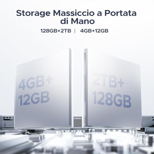 Sotto la scocca, il DOOGEE U11-V è alimentato dal processore Unisoc Tiger T606, un octa-core che, abbinato a 4GB di RAM fisica, gestisce senza problemi il multitasking e lo streaming. La memoria RAM può essere espansa virtualmente fino a 16GB (4GB fisici + 12GB virtuali), una caratteristica che contribuisce a mantenere il sistema reattivo. Lo spazio di archiviazione è di 128GB, più che sufficiente per app, foto e documenti, ma è comunque possibile espanderlo fino a 2TB tramite microSD.