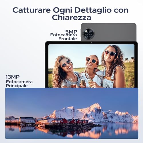 Per quanto riguarda le fotocamere, troviamo un sensore posteriore da 13MP e uno anteriore da 5MP. Come spesso accade sui tablet di questa categoria, le prestazioni fotografiche sono discrete solo in condizioni di buona illuminazione. La fotocamera posteriore permette di scattare foto accettabili per un uso social, ma non aspettatevi miracoli in condizioni di scarsa luce. La fotocamera anteriore, invece, si rivela adeguata per le videochiamate, garantendo una qualità video sufficiente per le conferenze online.