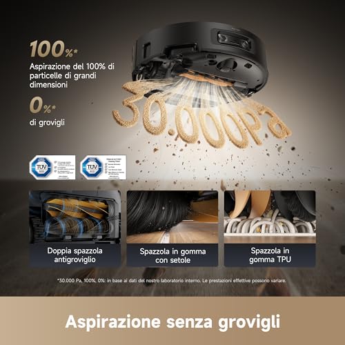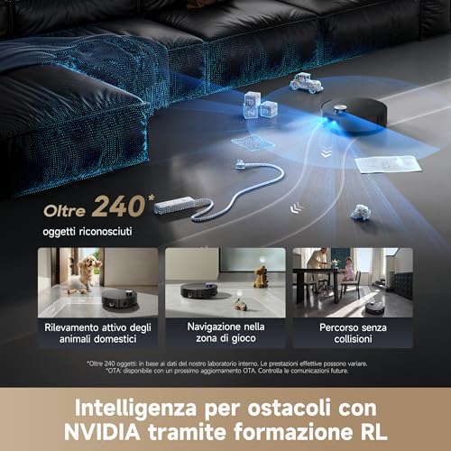 A prima vista, il design è quello elegante e minimalista tipico del brand, con linee pulite che si adattano a qualsiasi arredamento. Ma è sotto la scocca che si nasconde la vera magia. Con una potenza di aspirazione che raggiunge i 30.000 Pa, questo robot non teme polvere, peli di animali o sporco più ostinato, dimostrandosi particolarmente efficace anche sui tappeti a pelo lungo. La sua intelligenza artificiale, unita a una telecamera e sensori avanzati, gli permette di riconoscere ed evitare oltre 240 tipi di oggetti, dai cavi alle ciotole dei nostri amici a quattro zampe, garantendo una navigazione precisa e senza intoppi.