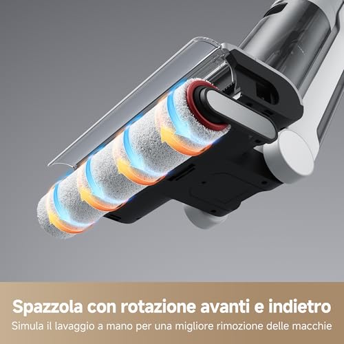 Una delle caratteristiche più apprezzate è la spazzola che pulisce fino ai bordi su entrambi i lati. Questo significa dire addio a quella fastidiosa striscia di sporco che rimane lungo i battiscopa e i mobili, un limite comune in molti altri modelli. La modalità Automatica, grazie a un sensore, adatta in autonomia la potenza di aspirazione e il flusso d'acqua in base a quanto è sporco il pavimento, ottimizzando così l'uso della batteria. Per lo sporco più ostinato, invece, c'è la modalità Ultra che spinge al massimo le prestazioni.