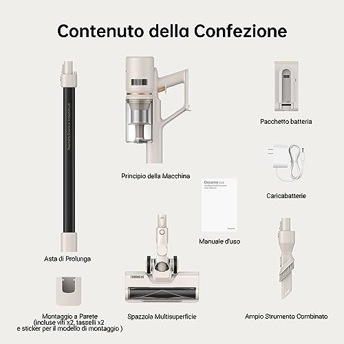 Parliamo del cuore pulsante di ogni aspirapolvere: il motore. Il Dreame R10 è equipaggiato con un motore brushless ad alta velocità da 120.000 giri/minuto che genera una potenza di aspirazione di 120 AirWatt (AW) e 20.000 Pa. Questi numeri, per chi non è esperto, si traducono in una capacità di aspirazione davvero notevole per un modello di questa fascia. È in grado di rimuovere senza sforzo polvere, briciole, capelli e peli di animali da qualsiasi superficie.