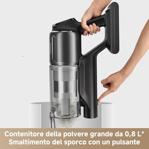 Anche il sistema di filtrazione è di altissimo livello. Lo Z30 è dotato di un sistema a 5 stadi che culmina con un filtro HEPA H14. Questa certificazione garantisce un'efficienza di filtraggio del 99,99% per particelle fino a 0,1 micron, trattenendo efficacemente polvere, allergeni e persino batteri e virus, per un'aria in uscita più pulita. Tutte le componenti del sistema di filtraggio, incluso il contenitore da 0,6 litri, sono facilmente smontabili e lavabili, semplificando notevolmente la manutenzione.