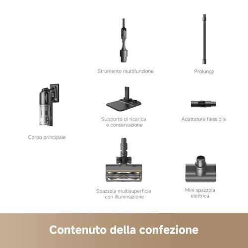 Tuttavia, non è esente da piccoli difetti. Il peso e il volume del corpo motore, comuni a tutti i modelli top di gamma molto potenti, possono renderlo un po' meno maneggevole per alcuni utenti, specialmente quando si puliscono superfici in altezza. Inoltre, lo svuotamento del serbatoio, sebbene semplice, può risultare un po' complicato quando si accumulano molti peli e capelli lunghi, che tendono ad aggrovigliarsi attorno al filtro ciclonico. Infine, la base di ricarica, seppur comoda, non riesce a contenere tutti i numerosi accessori in dotazione.