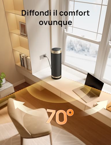 Un altro punto di forza è l'oscillazione a 70°. Attivando questa funzione, il termoventilatore ruota lentamente, distribuendo il calore in modo più ampio e uniforme nella stanza. Questo evita il classico "effetto phon", dove il calore è concentrato in un unico punto, e contribuisce a creare un ambiente più confortevole e omogeneo. Durante i miei test, ho notato come questa funzione sia efficace nel riscaldare una camera da letto di medie dimensioni in circa 15-20 minuti, portando la temperatura a un livello piacevole.