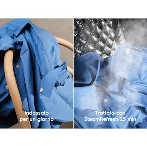 I veri punti di forza di questo modello risiedono nelle sue funzionalità avanzate. La più interessante è senza dubbio la tecnologia SteamCare, che utilizza il vapore per rinfrescare i capi e ridurre le pieghe. Il programma "Vapore Refresh" da 25 minuti è ideale per dare una rinfrescata a una camicia indossata per poche ore, eliminando gli odori e rendendo la stiratura molto più semplice. Questo non solo fa risparmiare tempo, ma anche acqua, con un consumo ridotto fino al 96% rispetto a un lavaggio tradizionale.