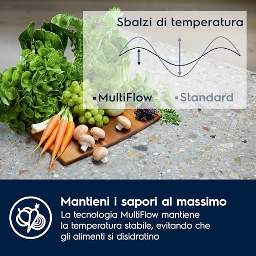 Il vano frigorifero mantiene un livello di umidità ideale, evitando che l'aria secca proveniente dal freezer secchi gli alimenti freschi come frutta, verdura, carne e pesce. Electrolux dichiara che questa tecnologia preserva fino al 60% in più di idratazione, mantenendo sapore, consistenza e proprietà nutritive più a lungo e riducendo gli sprechi alimentari. Niente più verdure avvizzite dopo pochi giorni o formaggi che si seccano. Allo stesso tempo, il congelatore rimane completamente libero da ghiaccio e brina, eliminando per sempre la fastidiosa operazione di sbrinamento manuale. Un altro vantaggio non da poco è l'assenza di scambio di odori tra i due scomparti.