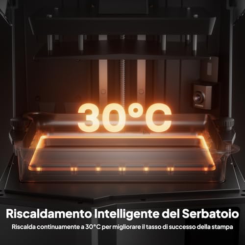 - Fotocamera AI integrata: Permette di monitorare le stampe da remoto, creare time-lapse e, soprattutto, rileva in modo intelligente eventuali problemi come distacchi o deformazioni, mettendo in pausa la stampa per evitare sprechi di resina.