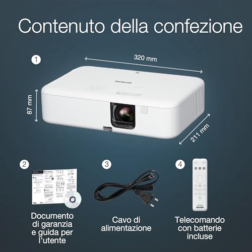 La durata della lampada è un altro punto a favore: Epson dichiara fino a 6.000 ore in modalità normale e ben 12.000 ore in modalità Eco, che si traducono in anni di utilizzo senza pensieri.