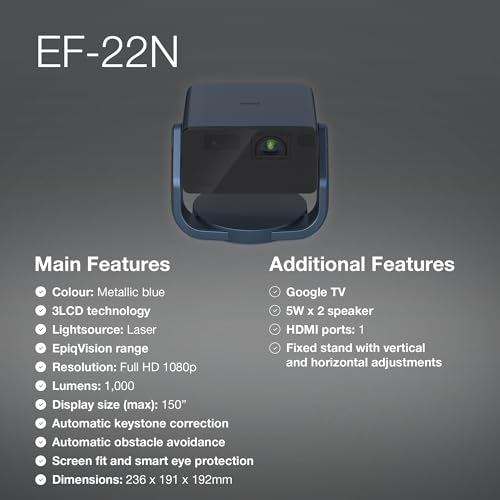 A rendere l'EF-21W una vera alternativa alla TV è l'integrazione di Google TV. Questo sistema operativo smart dà accesso a un universo di applicazioni come Netflix, YouTube, Disney+, Amazon Prime Video e molte altre, direttamente dal Play Store. L'interfaccia è fluida e il telecomando include un microfono per i comandi vocali tramite Google Assistant. È inoltre presente la funzionalità Google Cast (Chromecast) per trasmettere contenuti da smartphone e tablet con un semplice tocco.