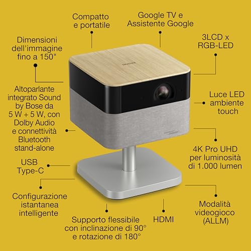 La vera star, però, è la collaborazione con un gigante dell'audio: per la prima volta, Epson integra un sistema Sound by Bose direttamente nei suoi proiettori. Questo significa un audio potente, chiaro e avvolgente senza il bisogno di collegare soundbar o altoparlanti esterni. Aggiungiamo a tutto questo la comodità di avere Google TV integrata e una garanzia di ben 5 anni, e le premesse per un prodotto di successo ci sono tutte.