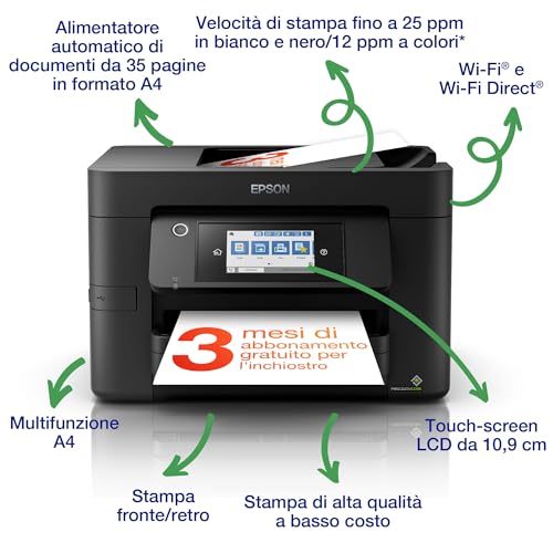 Un aspetto fondamentale nella scelta di una stampante è il costo di gestione. La WF-2820DWF utilizza quattro cartucce d'inchiostro separate (nero, ciano, magenta, giallo). Questo è un vantaggio notevole, perché permette di sostituire solo il colore esaurito, riducendo gli sprechi. Epson offre cartucce in formato standard e XL, per venire incontro a diverse esigenze di stampa. Inoltre, è possibile aderire al servizio in abbonamento ReadyPrint, che monitora i livelli di inchiostro e spedisce automaticamente le nuove cartucce a casa prima che si esauriscano, una soluzione comoda per non rimanere mai senza.