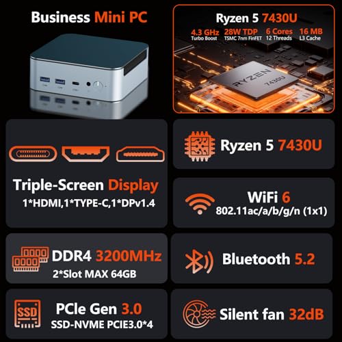 Il vero protagonista di questo Mini PC è senza dubbio il processore AMD Ryzen 5 7430U. Parliamo di una CPU mobile che, nonostante sia pensata per i laptop, si rivela sorprendentemente a suo agio in un formato desktop così compatto. Basato sull'architettura Zen 3, questo processore vanta 6 core e 12 thread, con una frequenza che può spingersi fino a 4.3 GHz in boost. Cosa significa tutto questo in parole povere? Significa che avrete a disposizione una potenza di calcolo più che sufficiente per affrontare senza problemi le attività quotidiane e anche qualcosa in più.