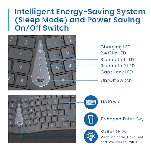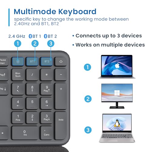 La versatilità è uno dei cavalli di battaglia di questa tastiera Ewent. Offre una doppia connettività: wireless a 2.4 GHz tramite il dongle USB incluso e Bluetooth. Questo permette di collegarla praticamente a qualsiasi dispositivo. Ma la vera chicca è la funzione Easy-Switch, che consente di associare fino a 3 dispositivi contemporaneamente (uno via USB e due via Bluetooth) e di passare dall'uno all'altro con la semplice pressione di un tasto.