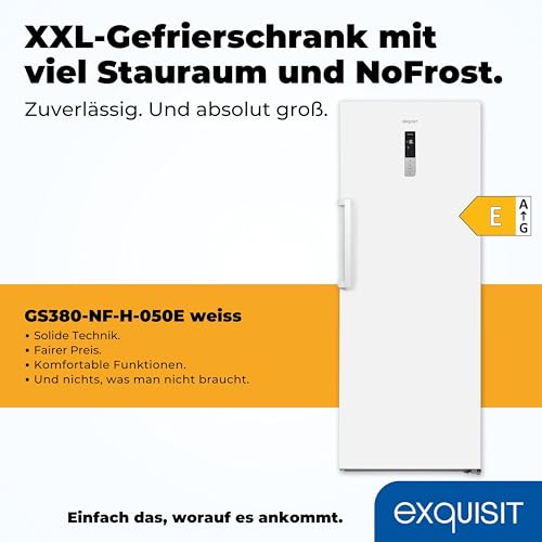 Oltre al NoFrost, l'Exquisit GS380-NF-H-050E è dotato di un comodo controllo elettronico della temperatura, gestibile tramite un display esterno ben leggibile. Questo permette di avere sempre sotto controllo la temperatura interna e di regolarla con precisione. Molto utile è la funzione di congelamento rapido (Super Frost), pensata per quando si introducono grandi quantità di alimenti freschi. Attivandola, il congelatore abbassa temporaneamente la temperatura per congelare i nuovi cibi nel minor tempo possibile, preservandone al meglio le proprietà nutritive e la consistenza.
