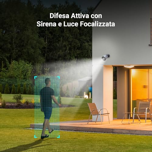 Inoltre, è dotata di una funzione di difesa attiva: in caso di intrusione, può attivare automaticamente una sirena e far lampeggiare i faretti per scoraggiare i malintenzionati. È anche possibile registrare messaggi vocali personalizzati.