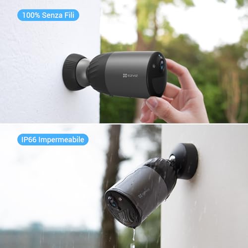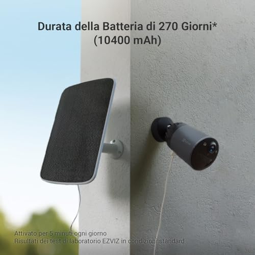 Nell'uso reale, l'autonomia dipende da moltissimi fattori: la frequenza dei rilevamenti, la durata delle registrazioni, la potenza del segnale Wi-Fi e l'uso dei faretti. Con un utilizzo mediamente intenso, è più realistico aspettarsi un'autonomia di qualche mese, che resta comunque un risultato eccellente. Per chi desidera una soluzione "installa e dimentica", è possibile collegarla a un pannello solare EZVIZ (venduto separatamente) per una ricarica continua e un'autonomia virtualmente infinita.