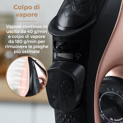 Il vapore è l'altro grande protagonista. L'erogazione continua di vapore, che in modelli come il T22013 si attesta sui 40g/min, ammorbidisce le fibre dei tessuti e facilita la rimozione delle pieghe. Per le pieghe più ostinate, entra in gioco il colpo di vapore (o steam boost), un potente getto che in alcuni modelli raggiunge i 180g/min, in grado di domare anche i tessuti più spessi e difficili come il denim o il lino. Inoltre, la funzione di vapore verticale è perfetta per rinfrescare tende o abiti appesi direttamente sulla gruccia.