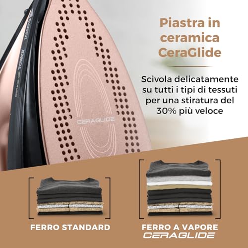 Fin dal primo impatto, i ferri da stiro Tower CeraGlide si distinguono per un'estetica curata. Le finiture, che spaziano dall'elegante champagne e nero del T22023GLD all'accattivante oro rosa del T22013, donano a questi elettrodomestici un aspetto moderno e ricercato. Ma al di là del look, è la praticità a convincere. L'impugnatura ergonomica e il peso bilanciato rendono questi ferri comodi da maneggiare, anche durante le sessioni di stiro più lunghe.
