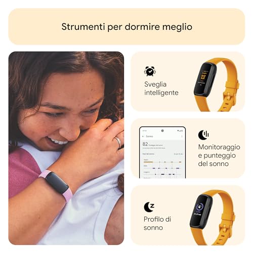 - Monitoraggio del sonno: Fitbit è da sempre un punto di riferimento per l'analisi del sonno e l'Inspire 3 non delude. Traccia le fasi di sonno (leggero, profondo, REM) e fornisce un Punteggio del Sonno giornaliero per aiutarti a capire la qualità del tuo riposo.