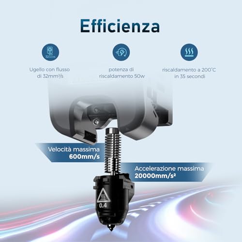Il piatto di stampa è una piastra magnetica flessibile in PEI, che assicura un'ottima adesione del primo layer e facilita enormemente la rimozione dei pezzi una volta terminata la stampa. Il volume di stampa è di 220x220x220mm, una dimensione standard e più che sufficiente per la maggior parte dei progetti hobbistici e professionali.