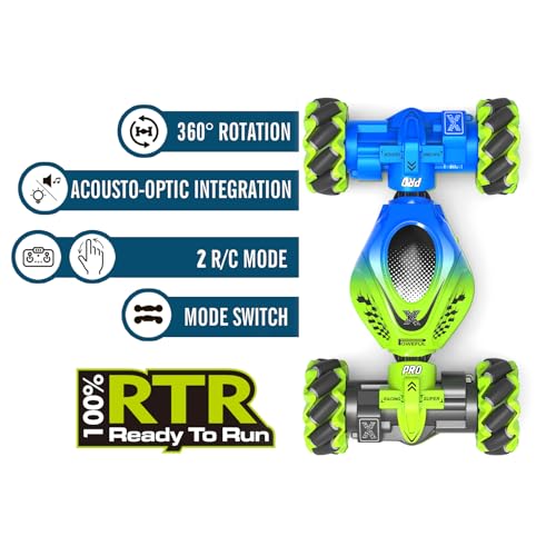 Il veicolo è in grado di eseguire la cosiddetta "stunt rotation", ovvero delle rotazioni vorticose che lasciano senza fiato. Inoltre, la funzione "spray" con luci a LED posteriori aggiunge un tocco di spettacolarità, simulando un effetto "nitro" che farà impazzire i bambini. Basta aggiungere un po' d'acqua nell'apposito serbatoio per attivare questo simpatico effetto scenico.