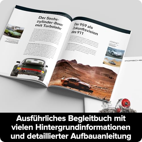 Un elemento che distingue questo kit è il modulo sonoro integrato. Una volta attivato, riproduce il suono originale e inconfondibile del motore boxer della 911, aggiungendo un livello di realismo e coinvolgimento davvero notevole. Inoltre, i LED simulano le scintille delle candele nei cilindri, un dettaglio che delizierà gli appassionati più attenti. Il kit include anche un dettagliato manuale di istruzioni, riccamente illustrato, che non si limita a guidare nel montaggio ma offre anche interessanti informazioni sulla storia della Porsche e del suo motore leggendario.