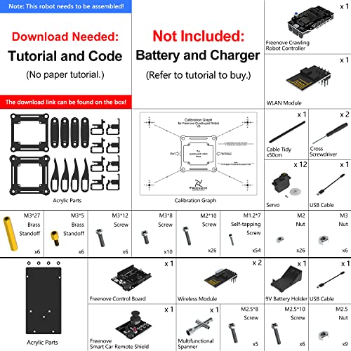 Una nota importante: il kit non include le batterie, che devono essere acquistate separatamente. Nello specifico, sono necessarie due batterie ricaricabili 18650 da 3.7V a testa piatta. Anche il manuale di istruzioni non è cartaceo: Freenove mette a disposizione un tutorial dettagliato e completo di codice da scaricare online, una scelta ecologica e pratica che permette aggiornamenti costanti.