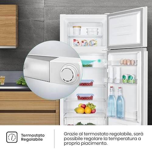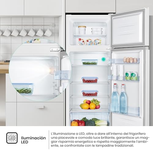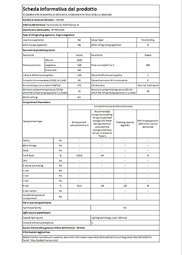 La maggior parte di questi modelli si colloca in classe di efficienza energetica E (secondo la nuova etichettatura). Sebbene non sia la classe più alta disponibile, rappresenta un compromesso accettabile nella fascia di mercato in cui questi frigoriferi si posizionano. Molti modelli sono dotati di un compressore Inverter, una tecnologia moderna che regola la potenza di raffreddamento in base alle reali necessità. Questo si traduce in una temperatura più stabile, un minor consumo energetico, una maggiore silenziosità e una vita utile dell'elettrodomestico potenzialmente più lunga. La rumorosità si attesta generalmente intorno ai 40-41 dB, un valore considerato nella media e non particolarmente fastidioso per un uso domestico.
