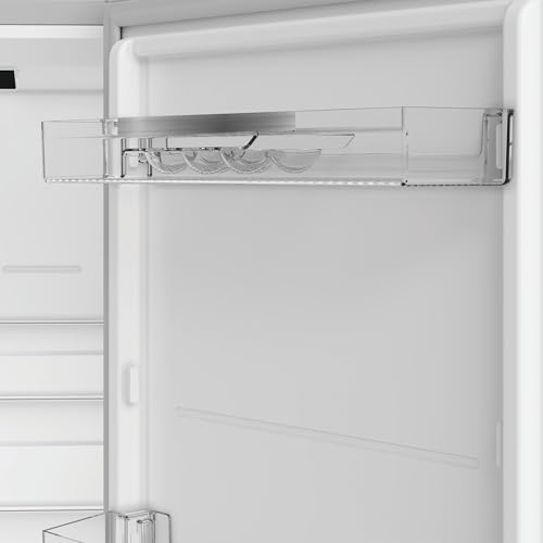 Dal punto di vista dell'efficienza, questo modello si colloca in Classe Energetica E, con un consumo annuo stimato di 247 kWh. La silenziosità è un altro punto a suo favore: con un'emissione acustica di soli 37 dB, rientra nella classe C di rumorosità, risultando quindi molto discreto durante il funzionamento. All'interno, i ripiani in vetro sono robusti e facili da pulire, e la presenza di un comodo porta-bottiglie aiuta a organizzare meglio lo spazio. La funzione di Congelamento Rapido è particolarmente utile per preservare la freschezza dei cibi appena acquistati.