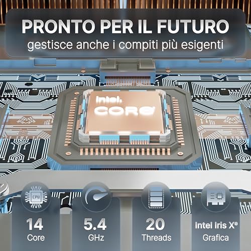 Il vero cuore pulsante di questo Mini PC è, ovviamente, il processore Intel di 13esima generazione. La serie Lux offre diverse configurazioni, pensate per soddisfare un'ampia gamma di utenti. Si parte dalle versioni con Intel Core i5 (come il 13420H o il 1335U), perfette per l'uso quotidiano, le applicazioni da ufficio, la navigazione web e lo streaming multimediale. Questi processori, con i loro 8 o 10 core, garantiscono una reattività eccellente e gestiscono senza problemi le attività di tutti i giorni.
