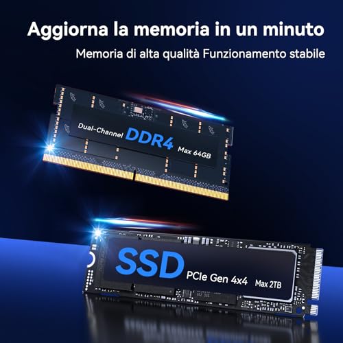Un'altra differenza chiave risiede nella memoria RAM. Il GEEKOM AX8 Max utilizza moduli DDR5 a 5600MHz, più veloci e recenti, che contribuiscono a migliorare le prestazioni generali del sistema, specialmente quelle della GPU integrata che beneficia molto della maggiore larghezza di banda. Viene solitamente fornito con 32 GB di RAM, espandibili fino a 64 GB.