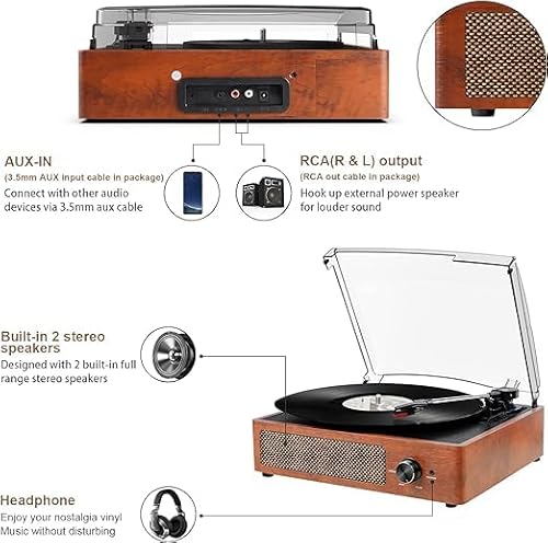 - Altoparlanti stereo integrati: Per un'esperienza di ascolto immediata, il giradischi è dotato di due altoparlanti stereo. Questo elimina la necessità di collegare casse esterne, rendendolo una soluzione compatta e portatile.