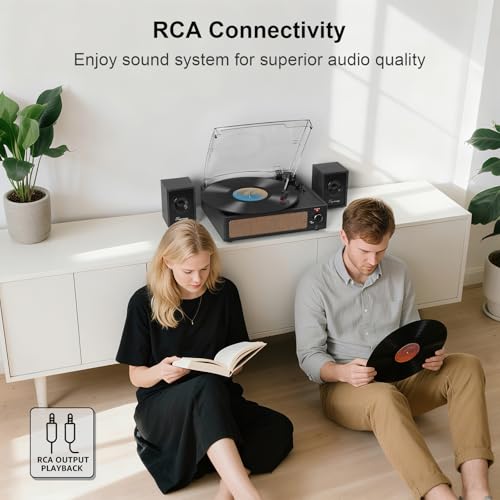 - Uscita RCA: Se gli altoparlanti integrati non dovessero bastarti, puoi facilmente collegare il giradischi a un impianto stereo esterno o a delle casse attive tramite le uscite RCA, per un suono più potente e di maggiore qualità.