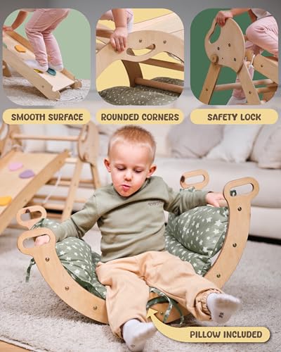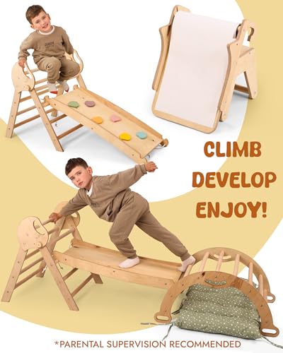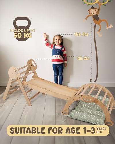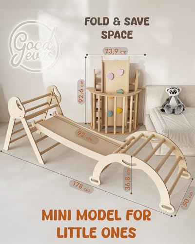 Questo non è un semplice gioco, ma uno strumento di sviluppo basato sulla pedagogia Montessori. L'idea è quella di offrire ai bambini un ambiente sicuro dove poter esplorare liberamente le proprie capacità motorie, sviluppare l'equilibrio, la coordinazione e la fiducia in sé stessi. Il design del triangolo di Pikler, elemento centrale di molti set Goodevas, è studiato per permettere anche ai più piccoli di iniziare a tirarsi su e a sperimentare l'arrampicata in totale autonomia e sicurezza. A differenza dei classici giochi da parco, il telaio Goodevas è pensato per l'uso domestico, diventando un punto di riferimento per il gioco attivo quotidiano, indipendentemente dalle condizioni meteorologiche.