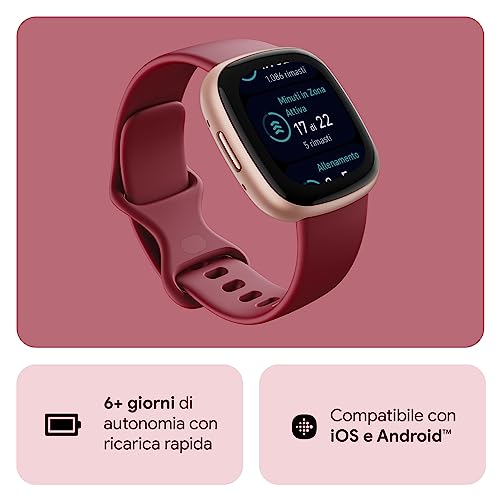 Uno dei punti di forza indiscussi del Fitbit Versa 4 è la durata della batteria. Fitbit dichiara oltre 6 giorni di autonomia con una singola carica, un dato che si avvicina molto alla realtà con un utilizzo standard. Ovviamente, l'uso intensivo del GPS o del display always-on riduce la durata, ma rimane comunque eccellente rispetto a molti concorrenti. La ricarica è rapida: in soli 12 minuti si ottiene un'autonomia sufficiente per un'intera giornata.