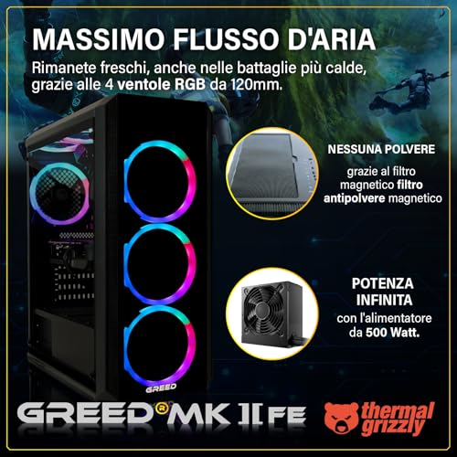 In conclusione, il Greed MK2 Gaming Systeme è una scelta eccellente e altamente raccomandata per chi cerca un PC da gaming preassemblato potente, affidabile e con un ottimo rapporto qualità-prezzo. La cura nell'assemblaggio austriaco, la garanzia di 3 anni e la scelta di componenti equilibrati lo rendono un prodotto competitivo e rassicurante per l'acquirente. È una macchina versatile, capace di offrire un'esperienza di gioco di alto livello in 1440p e 4K, ma anche di supportare carichi di lavoro intensivi. Nonostante qualche piccolo difetto segnalato da alcuni utenti, i pro superano decisamente i contro. Se cercate un PC "plug and play" pronto a farvi divertire per anni senza compromessi, il Greed MK2 è un investimento che difficilmente vi deluderà.