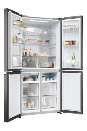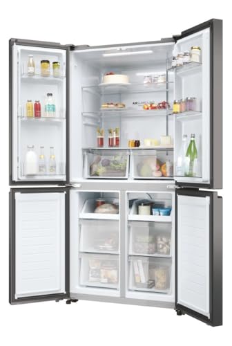 Il primo impatto con l'Haier Cube 83 Serie 3 è senza dubbio visivo. Con i suoi 83 cm di larghezza e la finitura scura in inox, questo frigorifero "americano" a 4 porte si presenta con un design moderno e sofisticato, capace di valorizzare qualsiasi cucina. Le quattro porte verticali non sono solo un vezzo estetico: garantiscono una visibilità ottimale del contenuto sia nel vano frigo che nel freezer. Questo si traduce in una ricerca più rapida degli alimenti, riducendo gli sbalzi di temperatura e, di conseguenza, i consumi energetici.