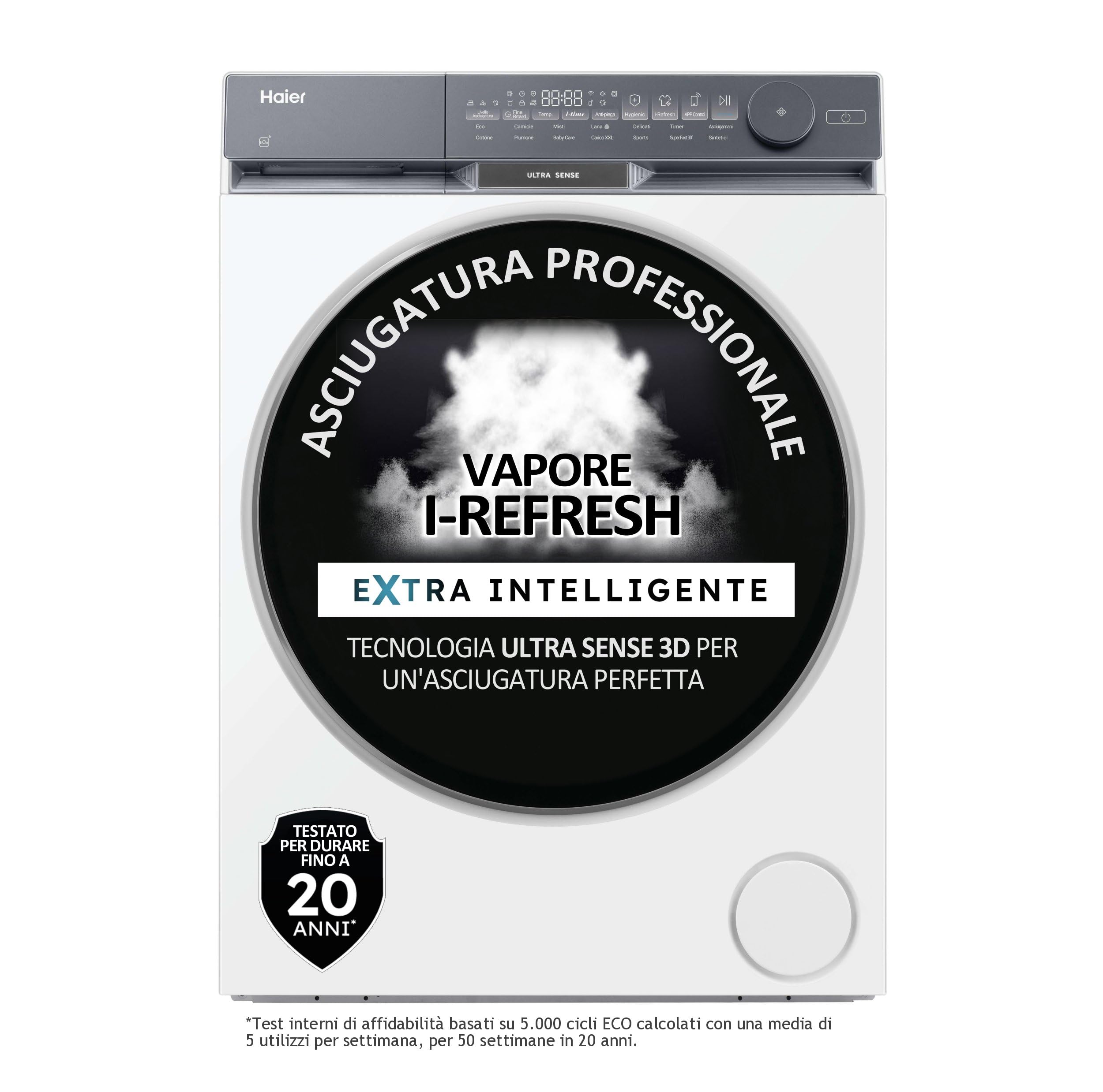 La Haier I-Pro Serie 3 offre una vasta gamma di programmi di asciugatura, ben 15, pensati per trattare ogni tipo di tessuto con la massima cura. Dai classici cicli per cotone e sintetici, a quelli specifici per capi delicati, lana, piumoni e abbigliamento sportivo. Tra le funzioni più interessanti spicca l'innovativo programma I-Refresh. Questa tecnologia a vapore permette di rinfrescare i capi, eliminando odori, polvere e riducendo le pieghe, anche sui tessuti più delicati, senza la necessità di un ciclo di lavaggio completo. Un'opzione perfetta per dare nuova vita a una giacca indossata una sola volta o a una camicia rimasta troppo a lungo nell'armadio.