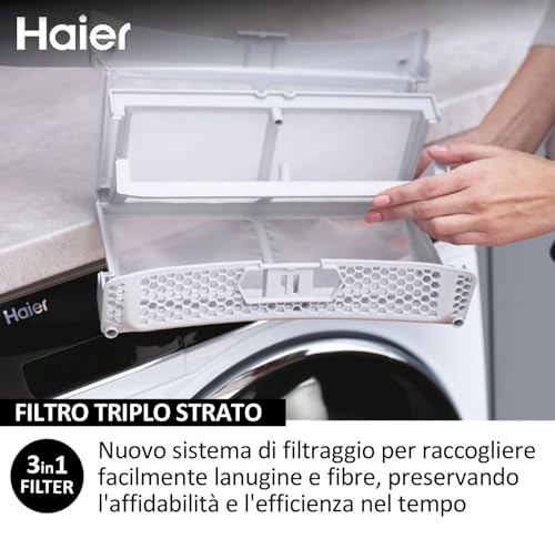 La Haier I-Pro Serie 5 non è solo capienza. Il vero punto di forza risiede nella sua dotazione tecnologica. Il sistema di asciugatura a pompa di calore è una garanzia di efficienza energetica e delicatezza sui tessuti. Questa tecnologia, infatti, lavora a temperature più basse rispetto alle tradizionali asciugatrici a condensazione, preservando meglio le fibre dei vestiti e riducendo i consumi.