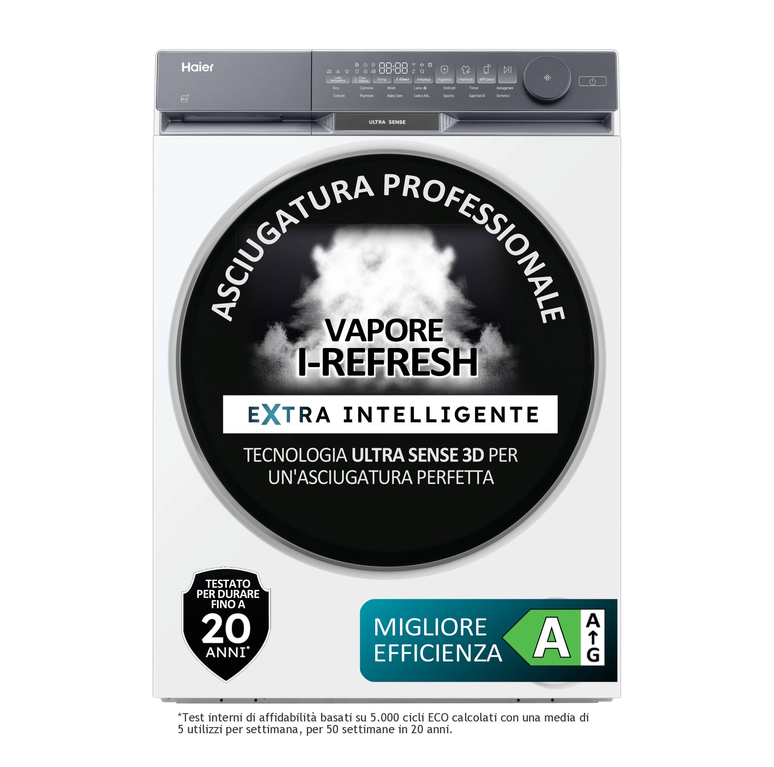 L'asciugatrice Haier X Serie 9 HD90-AQ387U1-IT è un elettrodomestico che si posiziona decisamente nella fascia alta del mercato, e lo fa con merito. Non è solo una macchina per asciugare i panni, ma un vero e proprio sistema per la cura dei tessuti. Le tecnologie innovative come Twin Turbo e Ultra Sense 3D Tech garantiscono risultati eccellenti e personalizzati, mentre funzioni come I-Refresh e la connettività smart tramite app hOn aggiungono un livello di comodità e versatilità che fa la differenza. La classe energetica A, la grande capacità di carico e la cura costruttiva la rendono un investimento intelligente per chi cerca performance, efficienza e rispetto per i propri capi. Se il vostro obiettivo è rivoluzionare la gestione del bucato, riducendo i tempi di stiratura e garantendo ai vostri vestiti una vita più lunga, questo modello di Haier è senza dubbio una delle migliori opzioni da considerare.