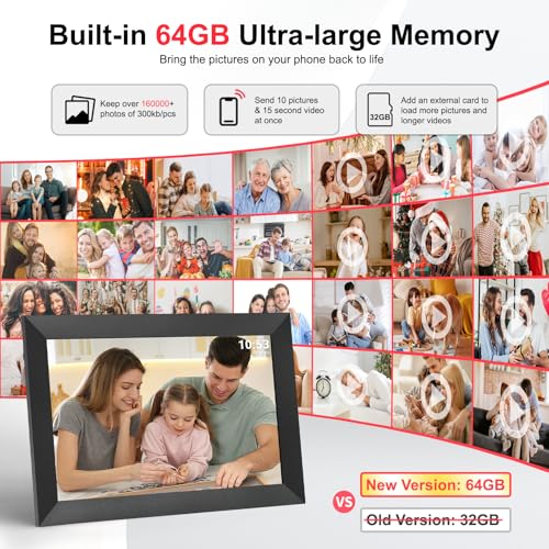 La cornice Hesmor è dotata di una memoria interna da 32 GB, una capacità di tutto rispetto che permette di archiviare migliaia di foto (il produttore stima circa 80.000 foto da 300KB). Questo spazio è più che sufficiente per la maggior parte degli utenti, garantendo un archivio personale sempre a disposizione.