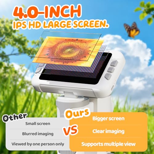 La caratteristica che salta subito all'occhio è l'ampio schermo IPS da 4,0 pollici. Questa è una vera e propria rivoluzione rispetto ai microscopi tradizionali, dove i bambini (e non solo) devono strizzare un occhio per guardare nell'oculare. Qui, l'immagine viene proiettata direttamente sullo schermo, rendendo l'osservazione molto più comoda, immediata e soprattutto condivisibile. Più bambini, o anche un genitore e un figlio, possono guardare insieme, commentare e scoprire, trasformando l'apprendimento in un'attività sociale e collaborativa.