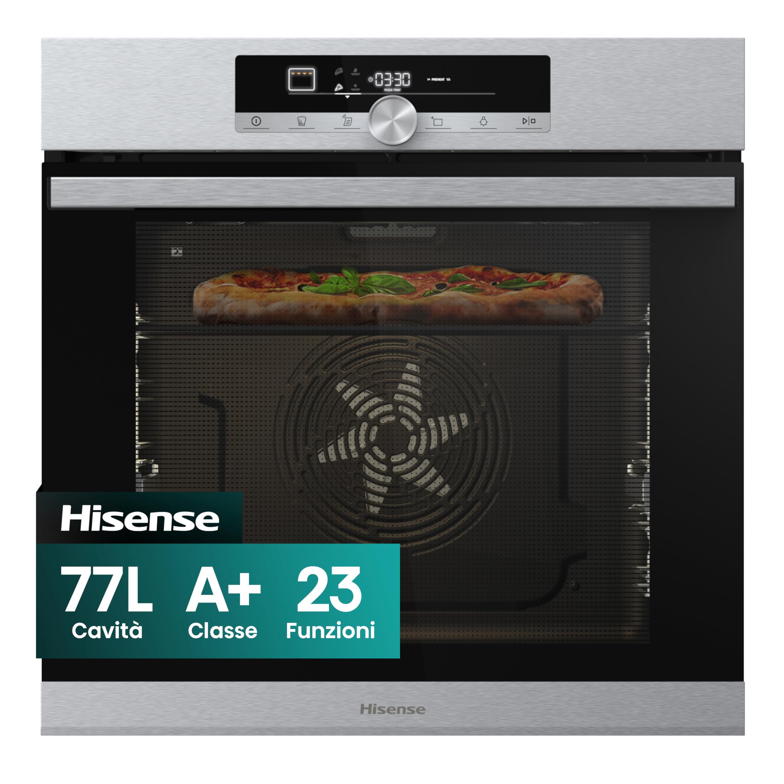 Al primo impatto, l'Hisense BI61111AX si presenta con un design moderno ed elegante, caratterizzato da una finitura in acciaio inox anti-impronta che si integra perfettamente in qualsiasi cucina, dalla più classica alla più contemporanea. Le linee sono pulite e le manopole a scomparsa (push and pull) conferiscono un aspetto minimale e ordinato, oltre a facilitare le operazioni di pulizia. Ma la vera star è senza dubbio la sua cavità interna: con ben 77 litri di volume, questo forno si classifica tra i più capienti sul mercato.