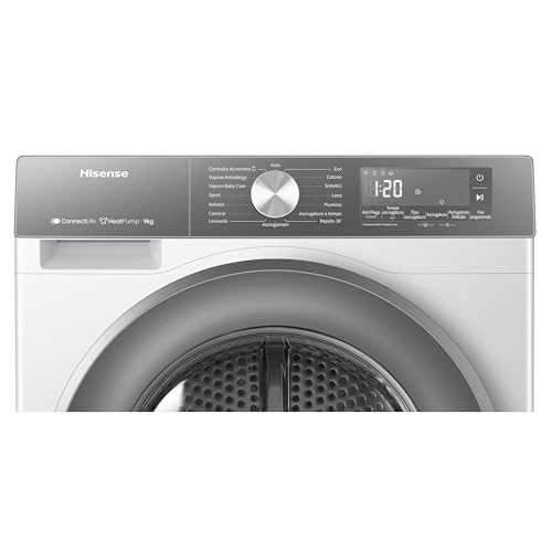 L'asciugatrice a pompa di calore Hisense DH3S902BWCCA si presenta sul mercato come una soluzione tecnologicamente avanzata per la cura del bucato, pensata per le famiglie moderne. Con una capacità di carico di 9 kg, è ideale per nuclei familiari di medie e grandi dimensioni, permettendo di gestire grandi quantità di biancheria in un unico ciclo. Il design è pulito e moderno, con un'elegante finitura bianco/silver e un ampio display che ne facilita l'utilizzo. Uno degli aspetti più pratici è la porta reversibile, che offre una grande flessibilità di installazione in base allo spazio disponibile.